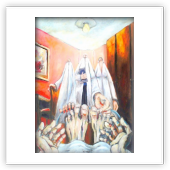 In seinen Arbeiten mit verzerrter und übertriebener Perspektive zwingt der Künstler den Betrachter zum Aufschauen. Unabhängig von Größe, Sein oder Nichtssein. Die Sichtweise des kleinsten Individuums ist Ausdruck seiner Demut und Botschaft zugleich...